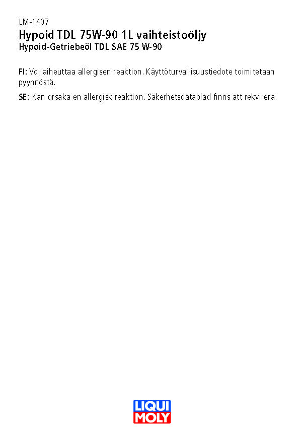 Hypoid TDL 75W-90 1L vaihteistoöljy