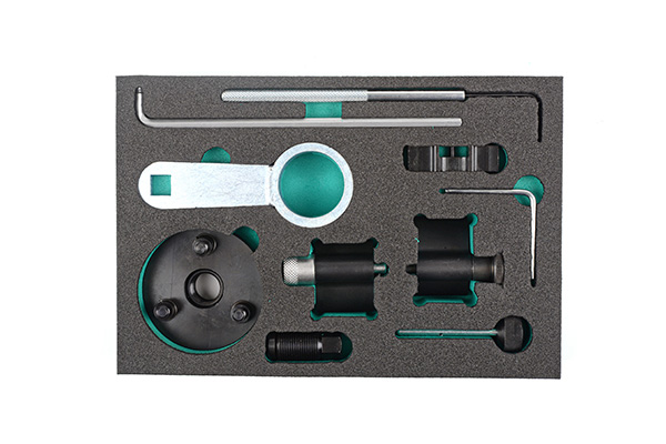 Moottorin lukitustyökalu, soveltuu Audin, Seatin ja Volkswagenin dieselmoottoreille 1.6 ja 2,0 TDi CR "BlueMotion". Täydellinen sarja moottoreiden ja pumppujen lukitsemiseen ja kiristykseen.