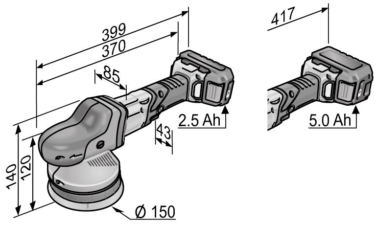 Akkukapasiteetti 2,5 / 5,0 Ah