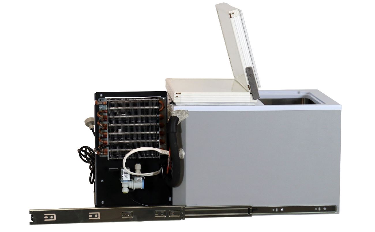 Jään tuotanto jatku myös äärimmäisissä ympäristön lämpötiloissa (Korkeintaan 38 ° C). Matala profiili mahdollistaa helpon asennuksen ohjaamosovelluksiin tai istuinten alle. Asennuksiin, joissa tila on rajallista.