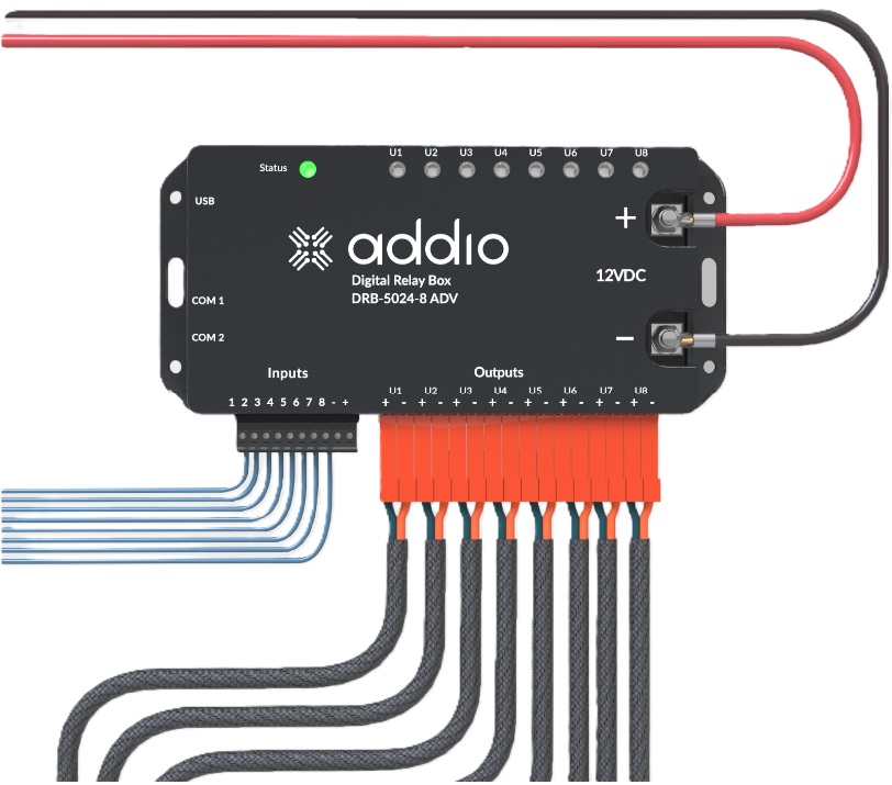 Addio DRB-releyksiköt ovat saatavilla 12V tai 24V jännitteille.