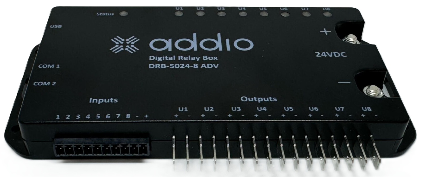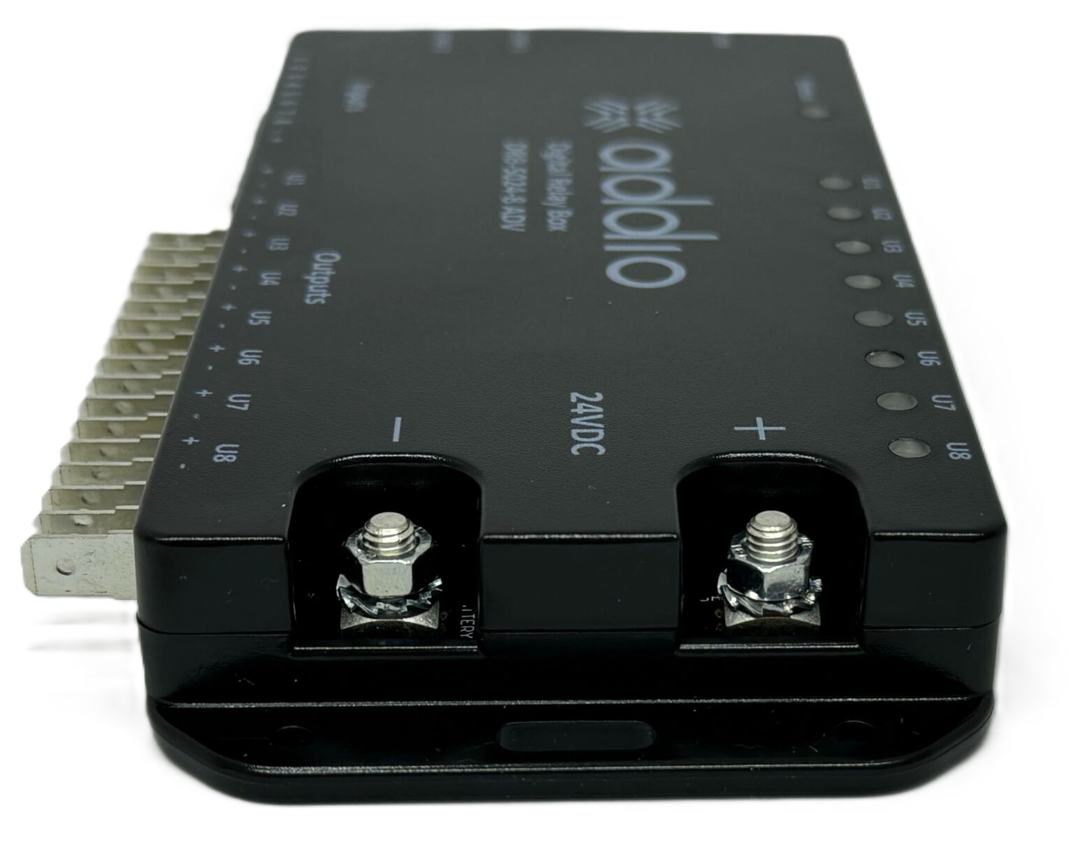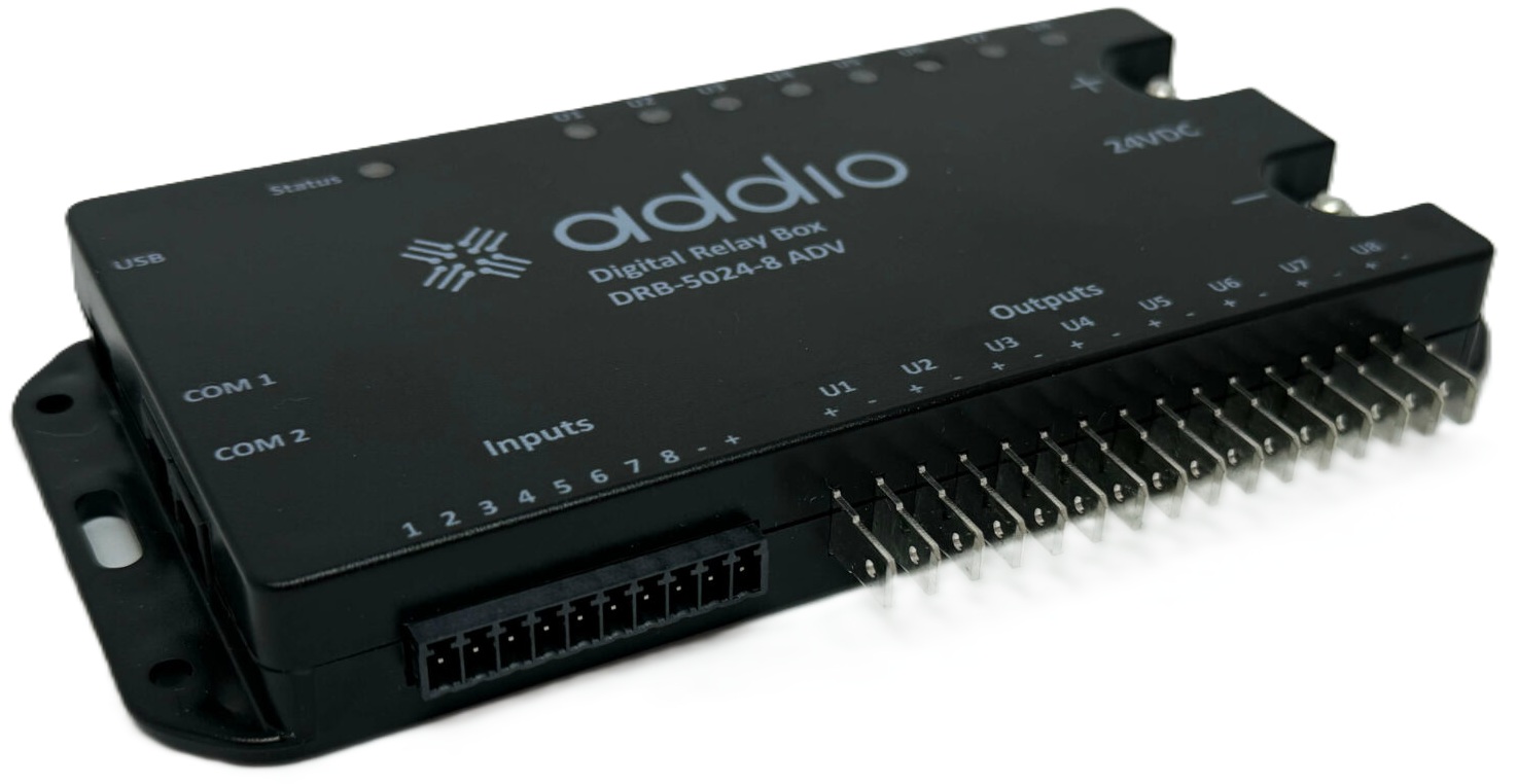 Addio korvaa perinteiset sulakkeet, releet ja kytkimet kompakteilla digitaalisilla rele-ratkaisuilla, tarjoten hallintaa, automaatiota, liitettävyyttä ja tilansäästöä. Addion tehokkain malli: 24V, 8 lähtöä ja 8 tuloa, jatkuva kokonaisvirta 100A Yleiset tiedot Yksikköä ohjataan ihanteellisimmin 8-painikkeisella ohjauspaneelilla (lisävaruste) CAN-väylään liitettynä, mutta myös tavalliset kytkimet tai muut signaalityypit - sekä digitaaliset (korkea/matala) että analogiset (vaihtelevat jännitteet) - voidaan konfiguroida ohjaamaan jokaista lähtöä. Tekniset tiedot 24V, 8 lähtöä ja 8 tuloa, jatkuva kokonaisvirta 100A.