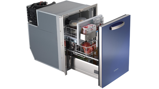 DR 49 GLASS on tilaa säästävä edestä avattavalla liukukiskoilla varustetulla laatikolla. 49 litran tilavuus, pakastin ja sininen LED-sisävalaistus. Sen ilme on tyylikäs ja moderni. Lasiovi edessä saatavilla eri väreissä.