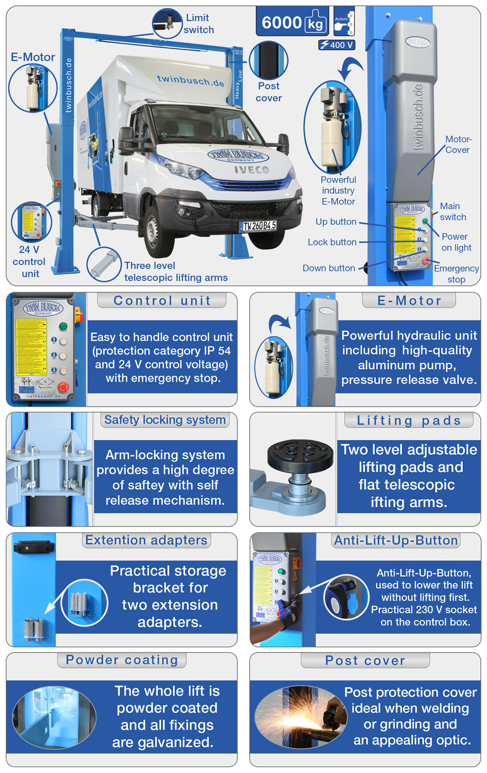 2 pilarinostin 6,0 t pakettiautoille lattiavapaa