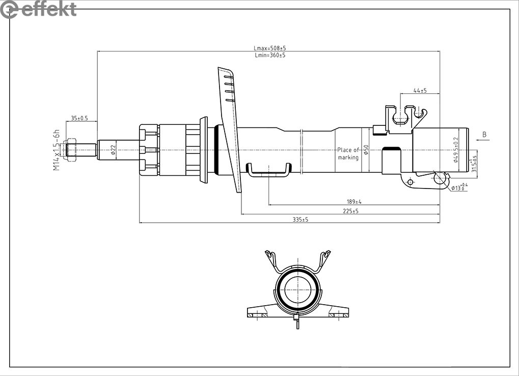 Iskunvaimennin asennustapa: Tappi ylhäällä